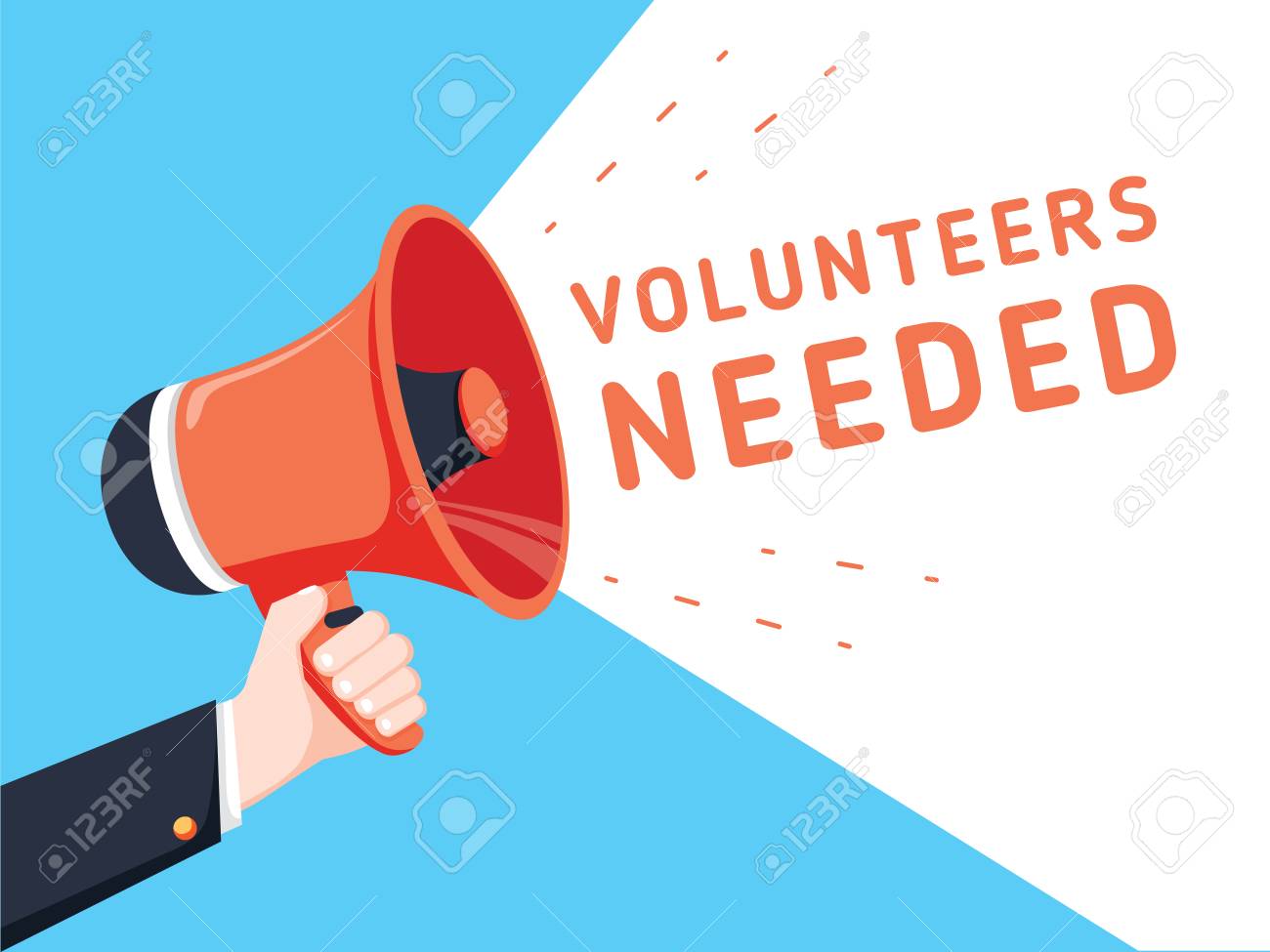 Male Hand Holding Megaphone With Volunteers Needed Speech Bubble Royalty Free Cliparts Vectors And Stock Illustration Image