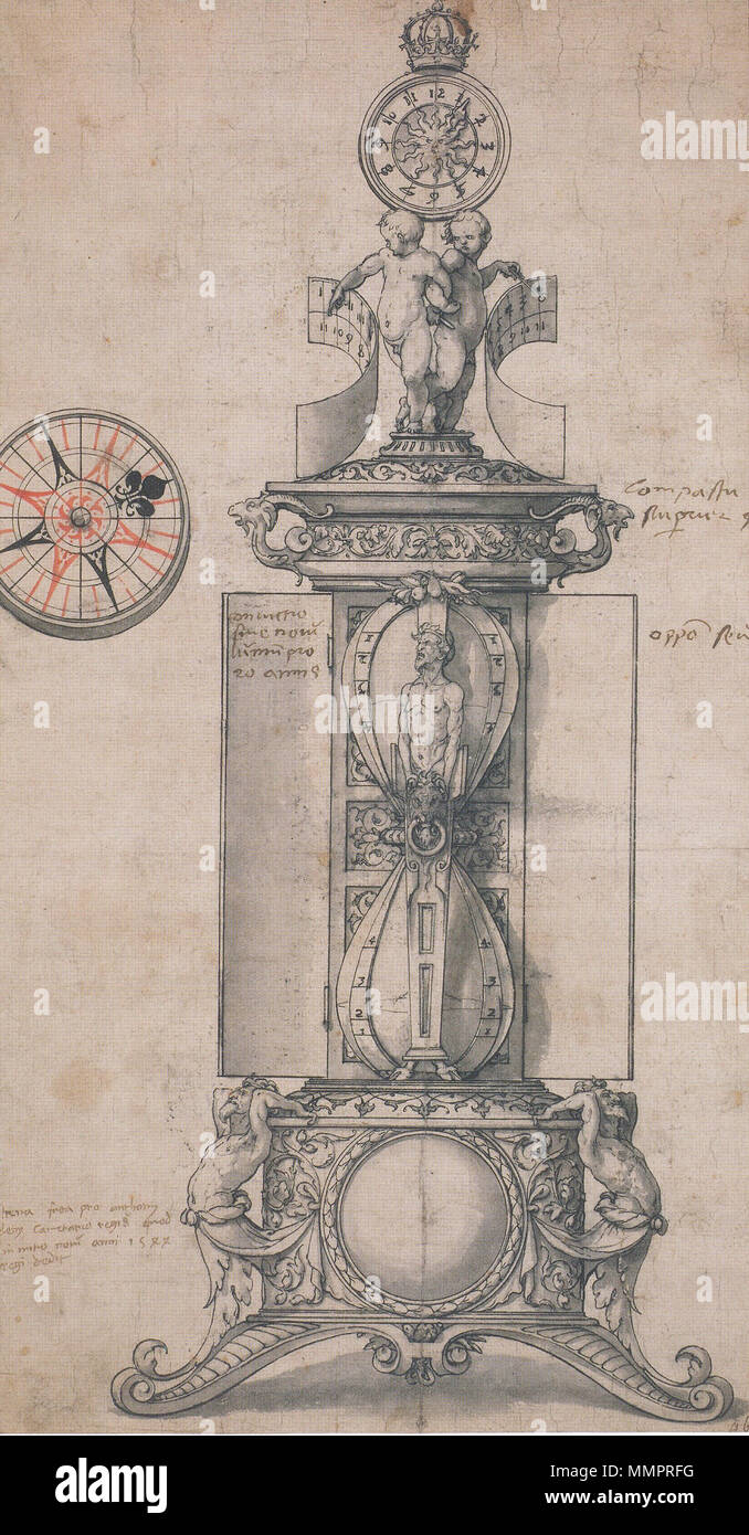 Inglese Design Per Anthony Denny S Clocksalt Penna E Inchiostro Nero Su Carta Con Lavaggio Grigio E