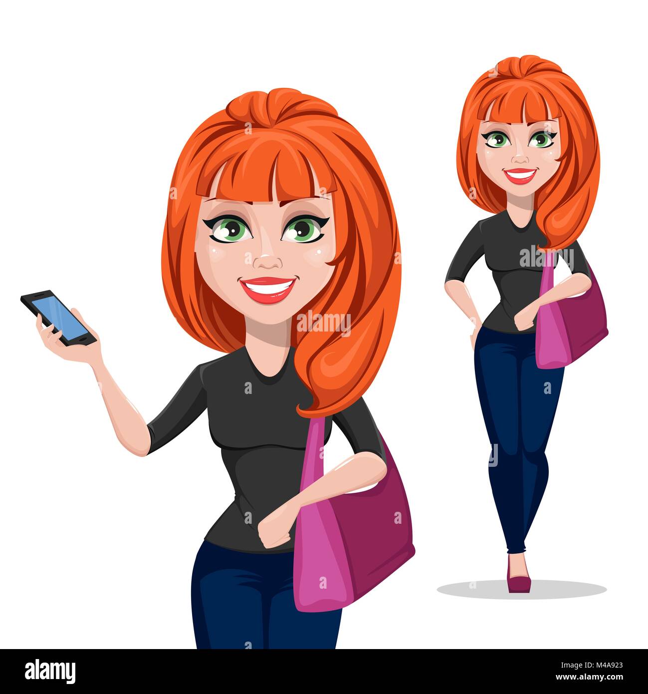 Libero Professionista Donna Personaggio Dei Fumetti Bella Giovane Imprenditrice O Designer In Stile Libero Vestiti Diritte In Piedi E In Piedi Con Lo Smartphone S Immagine E Vettoriale Alamy