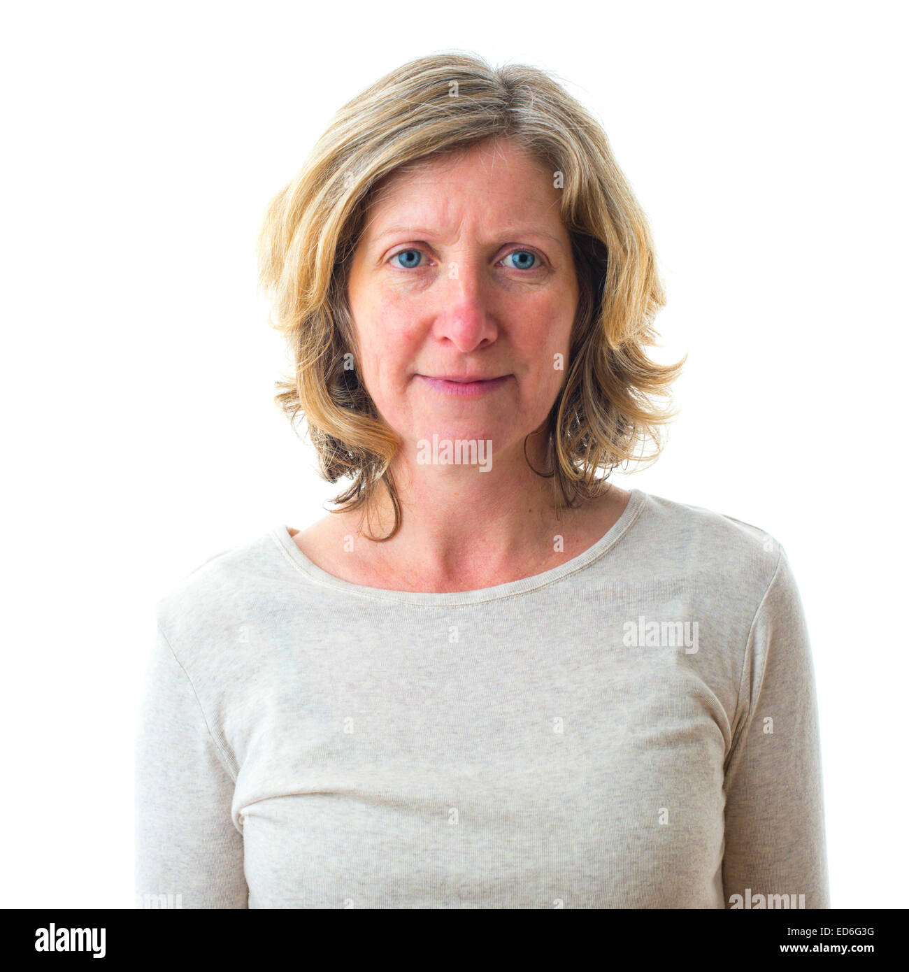 Una Testa E Spalle Ritratto Di Un Quarantenne Inglese British Adulto Donna Caucasica Rivolto In Avanti In Piedi Contro Uno Sfondo Bianco Regno Unito Foto Stock Alamy