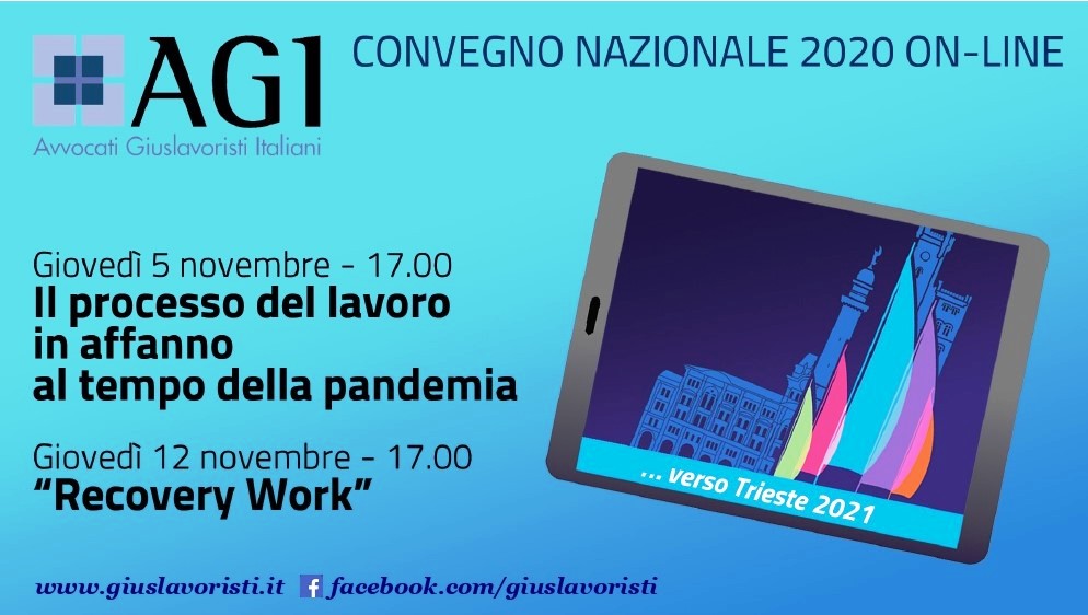 La platea dell’Agi, riunitasi ieri nel corso della prima giornata del convegno nazionale online, intitolata “Il processo del lavoro in affanno ai tempi della pandemia”, ha incassato le rassicurazioni del ministro della Giustizia, Alfonso Bonafede, sulle tre priorità dell’associazione giuslavoristi italiani,. Altri quattro attivi nella tutela degli interessi delle imprese. Associazione Veronese degli Avvocati Giuslavoristi Per diventare socio di AVAG è necessario fare il versamento delle seguenti quote annuali.