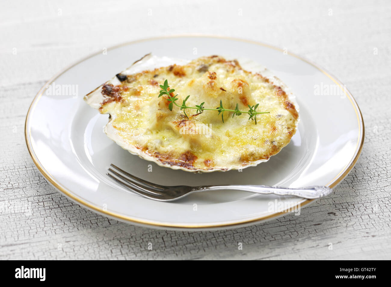 Coquilles Saint Jacques Gratinate Francese Cucina Capesante Foto Stock Alamy