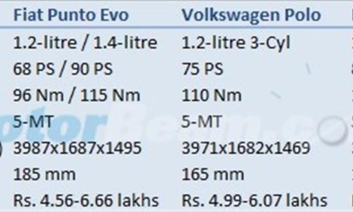 Fiat Punto Evo Vs Volkswagen Polo Vs Maruti Swift Price Comparison