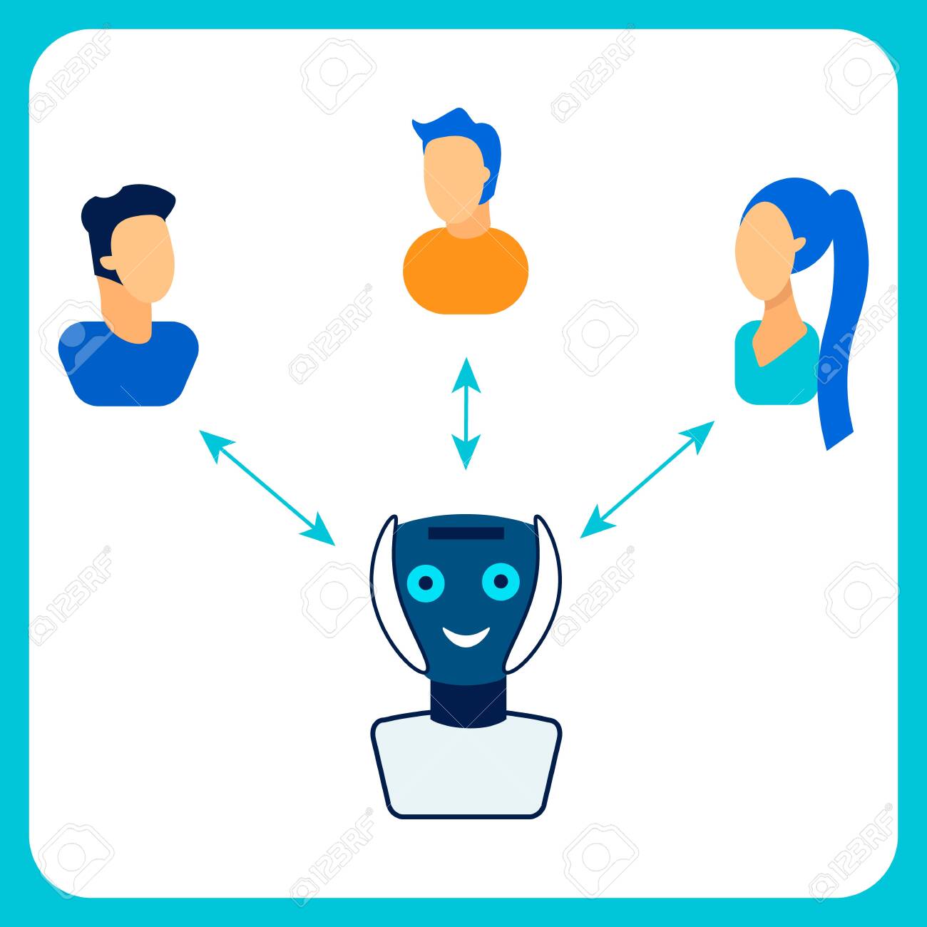 Human Robot Cooperation Flat Vector Illustration Cheerful Cyborg Royalty Free Cliparts Vectors And Stock Illustration Image