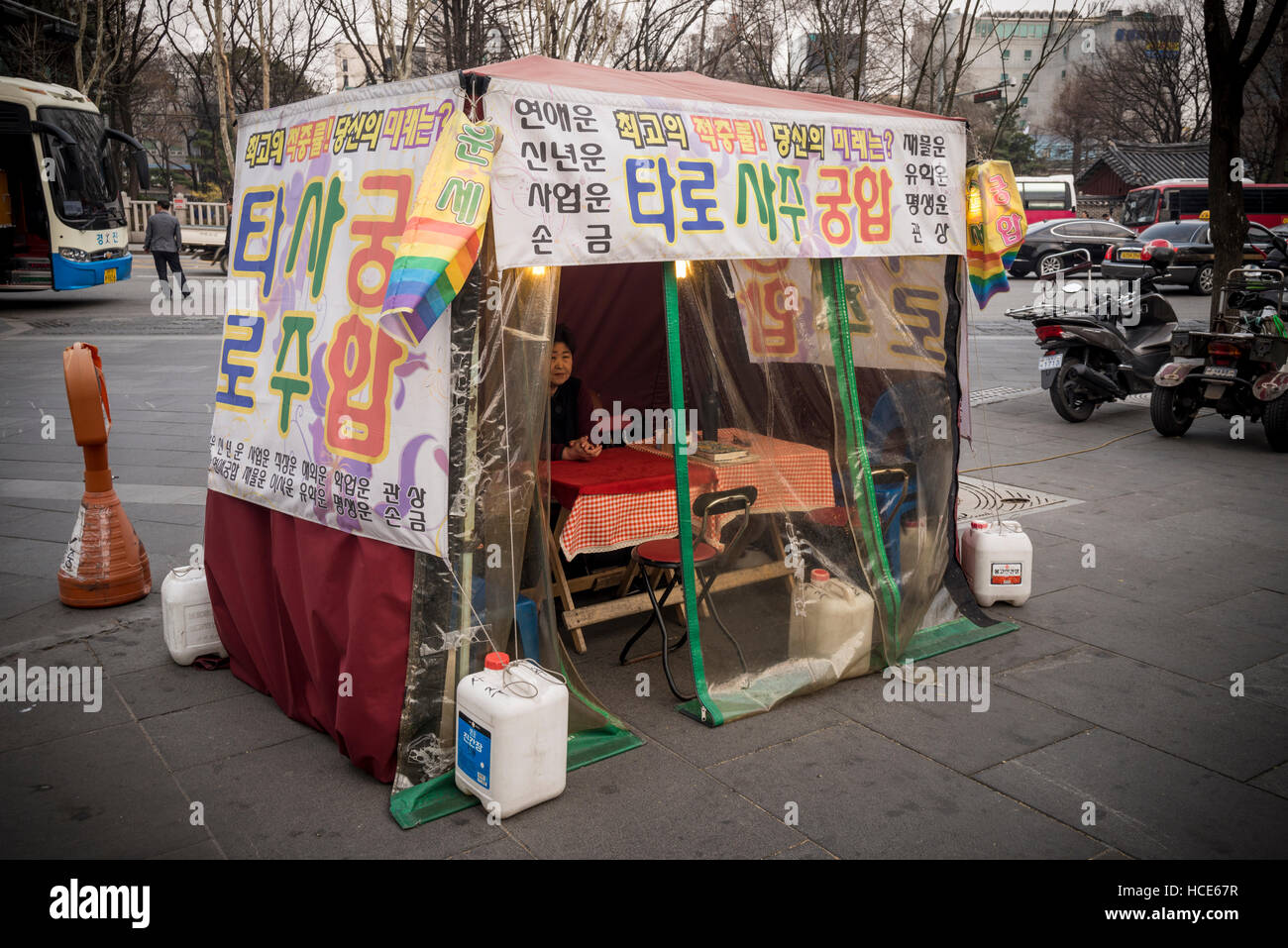 South Korea Seoul Jongno District Tent Of A Fortune Teller Reading Tarot Cards To Her Customers Stock Photo Picture And Rights Managed Image Pic Hms Hem Agefotostock