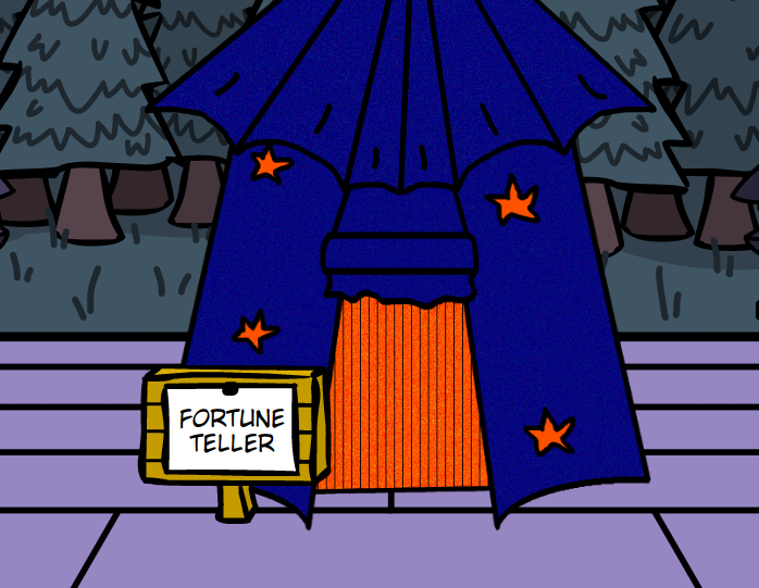 Katrina will tell the player a fortune for 500 Bells Instead of getting hit in the head with a heavy object, the player sits on their knees while Katrina tells their fortune While telling a fortune, her tent temporarily disappears and she and the recipient are surrounded by stars, or what Katrina calls the Star Matrix. Fortune Teller’s Tent is a temporary area where you can find Rare and Uncommon ingredients needed to craft the event recipes For example, it will drop the Spring Onions needed in Phase 1 Temporary Farm Hands Fortune Teller Farah and Mark Phillips. A short Story T he three friends Frequentist Frank, Stubborn Stu, and Bayesian Betty go to a funfair where a mysteriouslooking tent catches their eyes Inside, they meet Claire Voyant who claims to be a fortune teller The friends don’t believe her, of course — they need proofSo they conduct a little experiment.