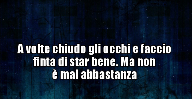 Mi dicevano di smetterla di crederci,che non ce l’avrei fatta,che se lo stomaco lo sento a pezzi posso sempre fingere un sorriso e fingere di stare bene,che in fondo questo servirà a farmi vedere un po’ più forte o renderà più forte qualcun altrobeh io non ho mai finto sorrisi ma sono sempre partita da quelli,perché sapete ragazzi miei la vita e’ una continua sorpresa,ti mette a. In questo articolo Fingi di dormire Dai l'impressione di dormire bene la notte6 Riferimenti Se stai cercando di evitare un compagno di stanza o un genitore, fingere di dormire può essere molto utile per te. Non fingere di stare già, già bene di colpo non si può dimenticare Niente di così profondo e intenso o almeno penso Dico ci riesco, poi mi perdo e ci ricasco nei momenti di sconforto, quando intorno a me tutto buio come, come la notte, come le botte, come le ferite abbandonate e mai curate, ancora aperte.