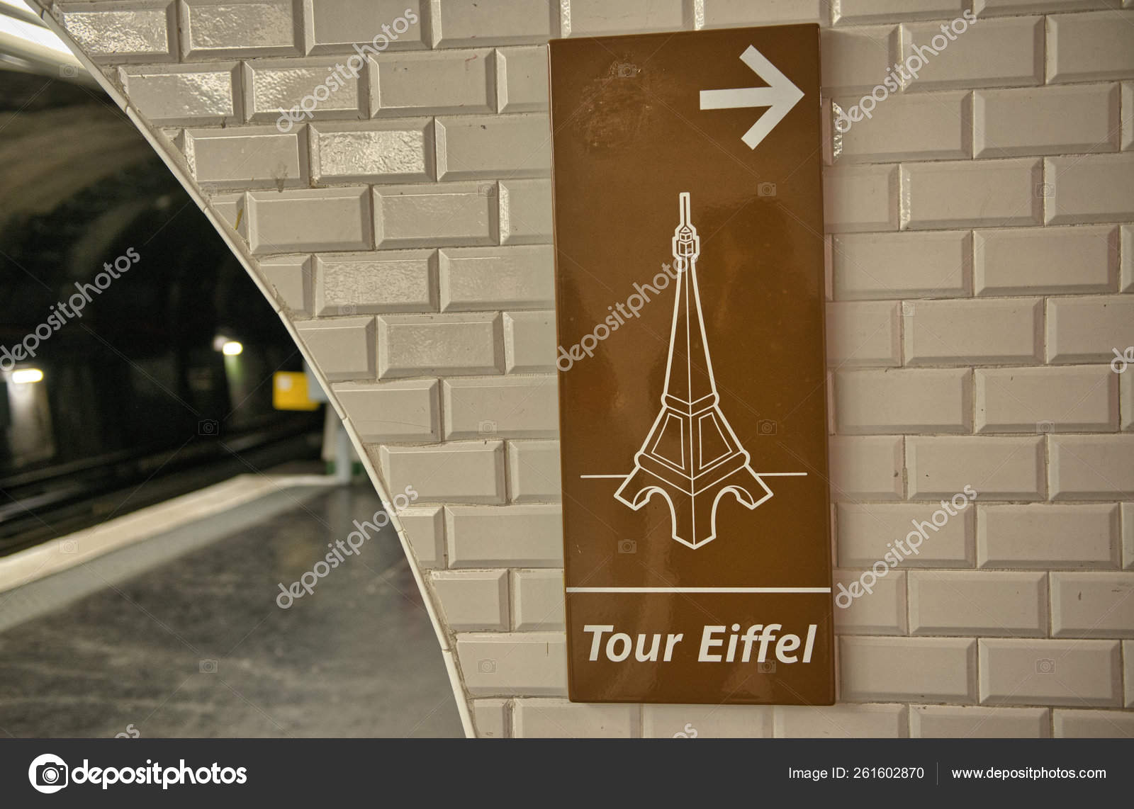 Eiffel Tower Metro Sign Directions Paris Stock Photo C Yayimages