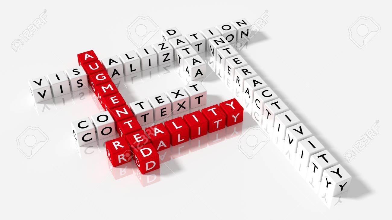 Immagini Stock Cruciverba Che Mostra Le Parole Chiavi Aumentate Di Realta Come Dadi Su Un Illustrazione Piana Di Concetto 3d Di Tecnologia Di Progettazione Del Bordo Bianco Image