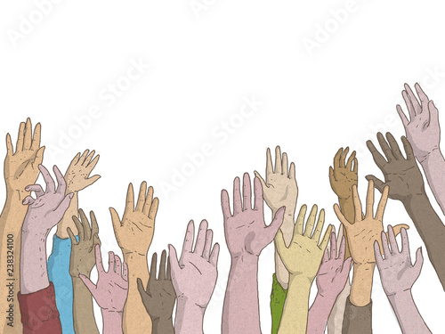 Mani Di Uomini E Donne Alzate In Richiesta Di Aiuto O Segnalare La Presenza Buy This Stock Illustration And Explore Similar Illustrations At Adobe Stock Adobe Stock