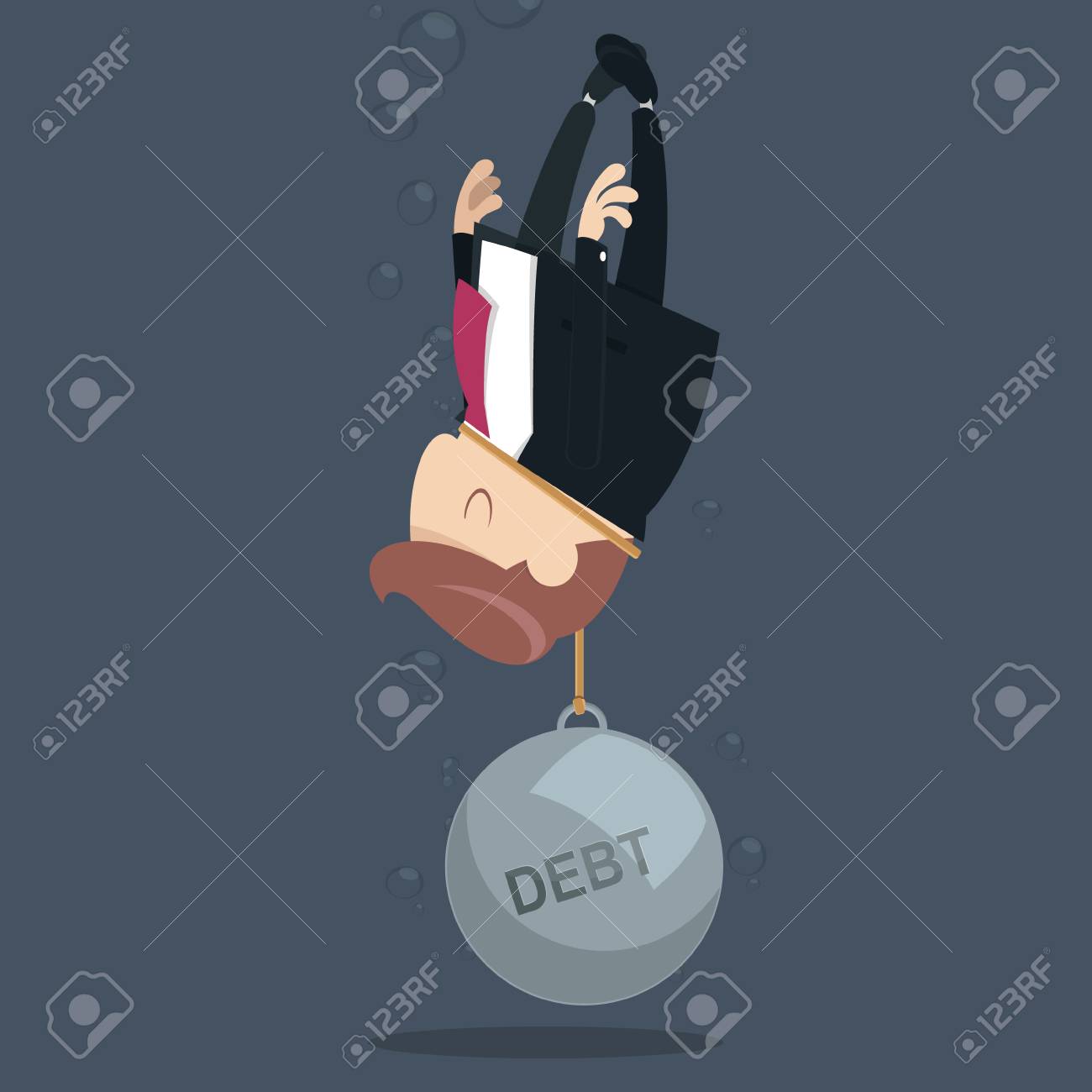 Vettoriale Businessman Richiesta Di Aiuto Perche Il Debito Pesa Image