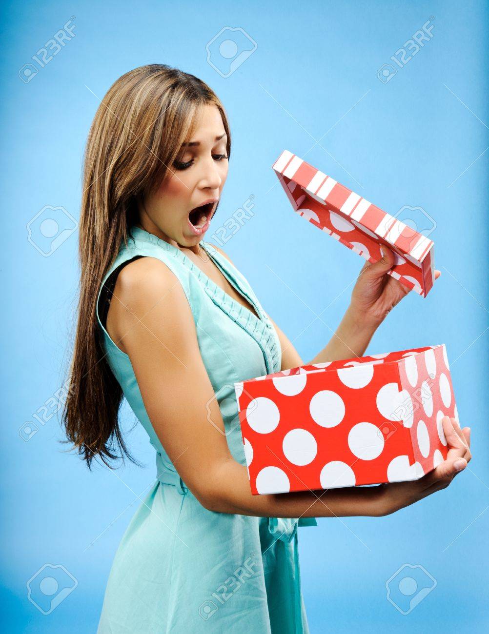 Mujer Bonita Es La Sorpresa De Recibir Un Regalo Para El Dia De San Valentin Fotos Retratos Imagenes Y Fotografia De Archivo Libres De Derecho Image