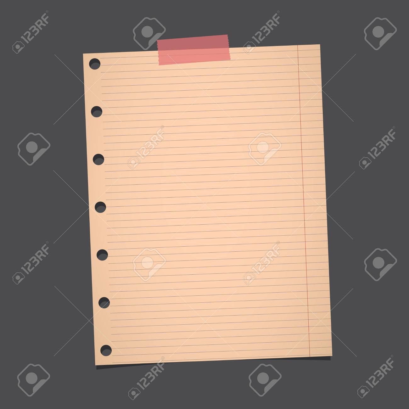 Vettoriale Carta Quaderno A Righe E Bloccato Con Il Nastro Adesivo Sul Muro Grigio Scuro Image
