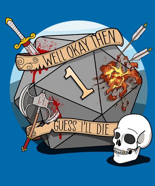 No products in the cart 0 Cart. Guess I'll Die I got inspired by a session where a party member would roll natural one after natural one, to the point he got hit all over and went unconsicious When he rolled his last natural one, he literally said well okay than, guess I'll die. 18,073 points • 802 comments Guess I'll die then 9GAG has the best funny pics, gifs, videos, gaming, anime, manga, movie, tv, cosplay, sport, food, memes.