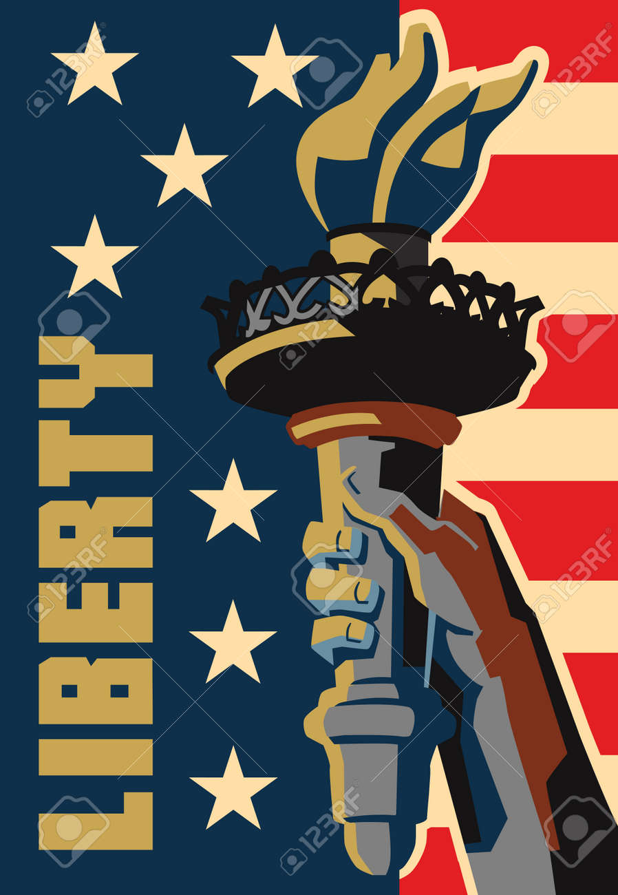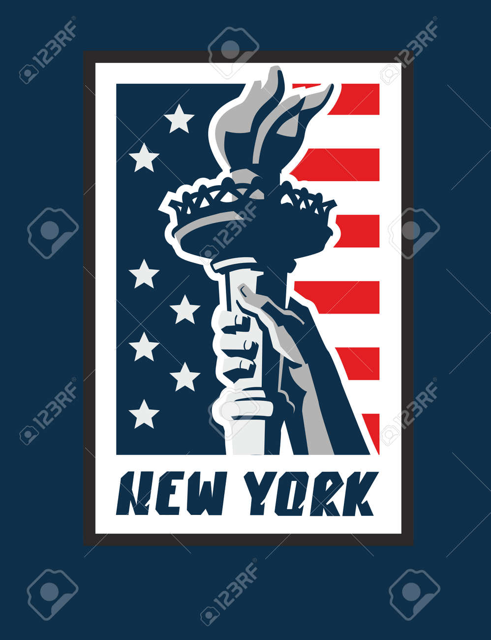 La Statua Della Liberta Punto Di Riferimento A New York Simbolo Americano Bandiera Americana Immagine E Vettoriale Alamy