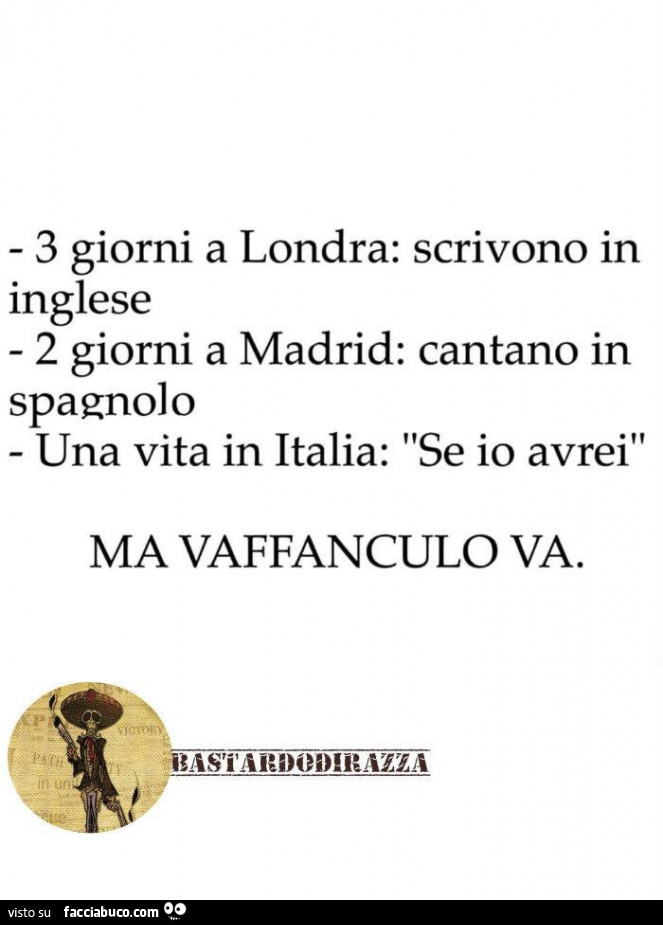 3 Giorni A Londra Scrivono In Inglese 2 Giorni A Madrid Cantano In Spagnolo Una Condiviso Da Cavaonde Facciabuco Com