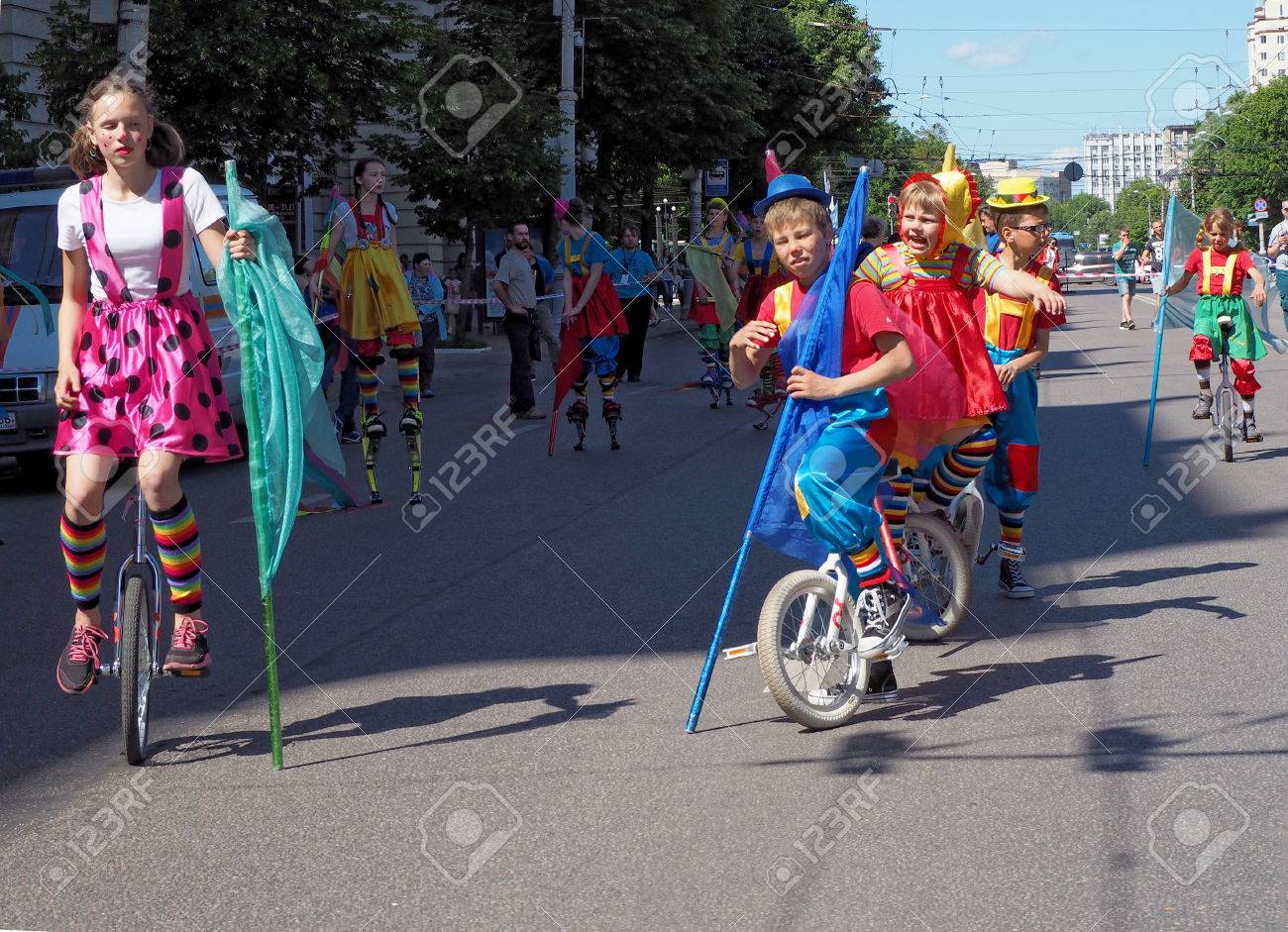 Immagini Stock Giovani Artisti Circensi Su Monocicli In Via Della Citta Sulle Sfilata Di Strada Teatri In Voronez Image