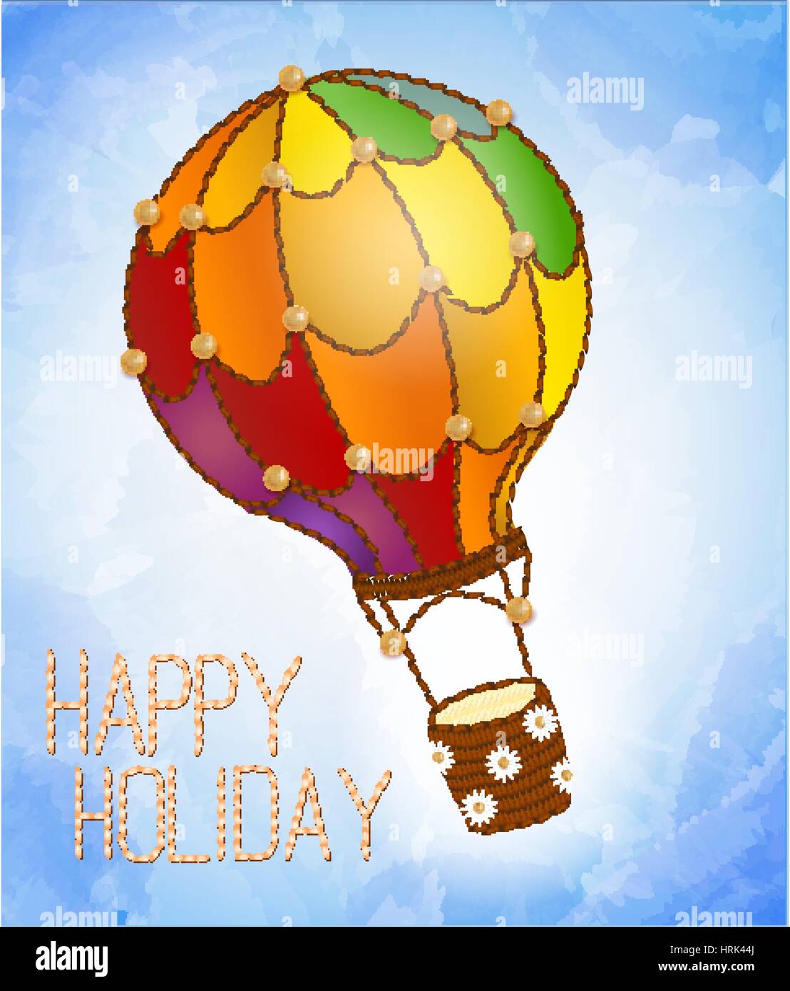 Biglietto Di Auguri Con Le Parole Buone Vacanze Nella Forma Di Una Mongolfiera Nel Cielo Su Sfondo Ad Acquerello Immagine E Vettoriale Alamy