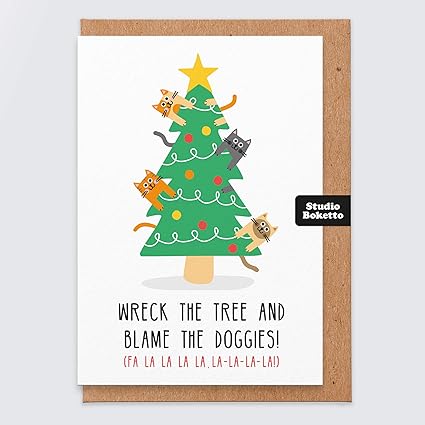 Cartolina Di Natale Buone Vacanze Biglietto Di Auguri Divertente Regalo Di Natale Fidanzato Fidanzata Marito Moglie Sorella Fratello Gatta Gatto Albero Di Natale Amazon It Cancelleria E Prodotti Per Ufficio