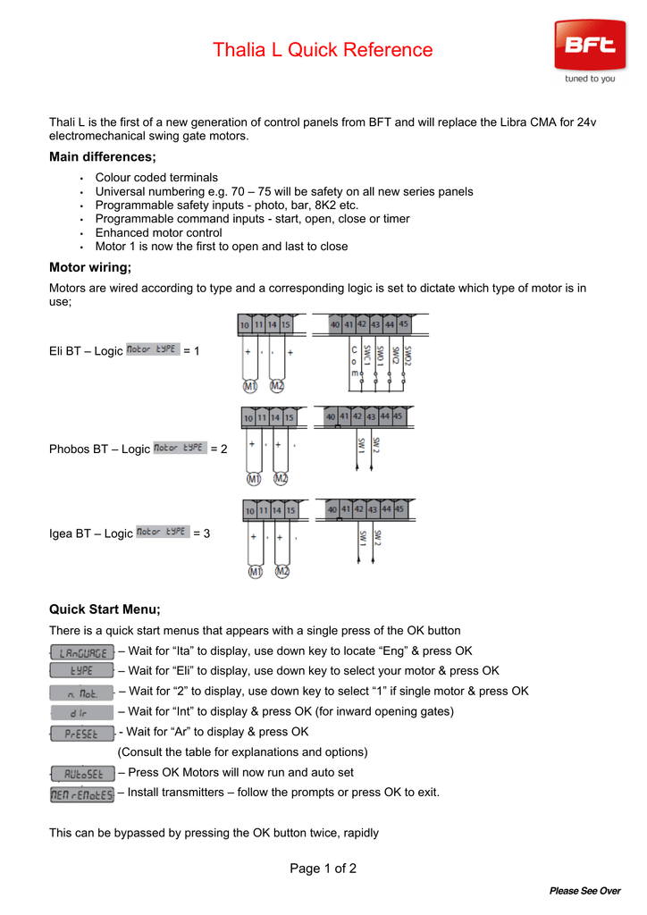 Bft Eli Bt Thalia L Quick Reference Guide Manualzz