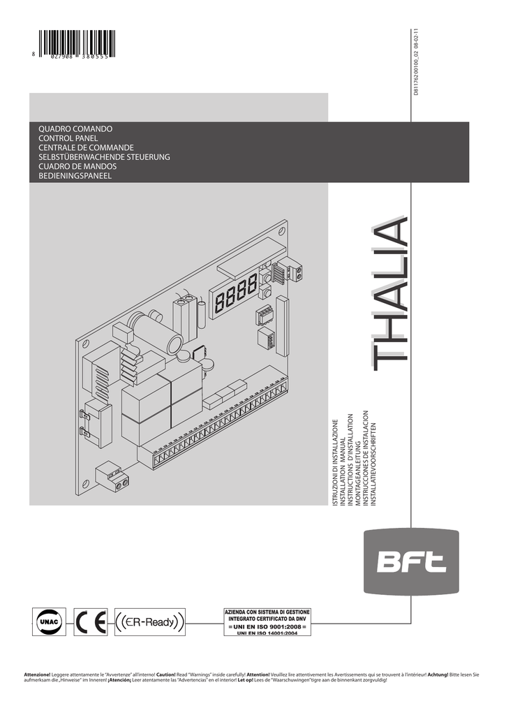 Thalia d _05 istruzioni di installazione installation manual instructions d’installation montageanleitung instrucciones de instalacion installatievoorschriften quadro comando control panel centrale de commande selbstberwachende steuerung cuadro de mandos. Le migliori offerte per THALIA LIGHT BLT2 CPEM 2230V 60/60HZ QUADRO COMANDO CENTRALINA BFT CANCELLO sono su eBay Confronta prezzi e caratteristiche di prodotti nuovi e usati Molti articoli con consegna gratis!. Le migliori offerte per BFT THALIA LIGHT BTL2 CENTRALE DI COMANDO SCHEDA CENTRALINA QUADRO D sono su eBay Confronta prezzi e caratteristiche di prodotti nuovi e usati Molti articoli con consegna gratis!.