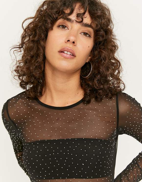 Black Mesh Top With Rhinestones Tally Weijl Online Shop