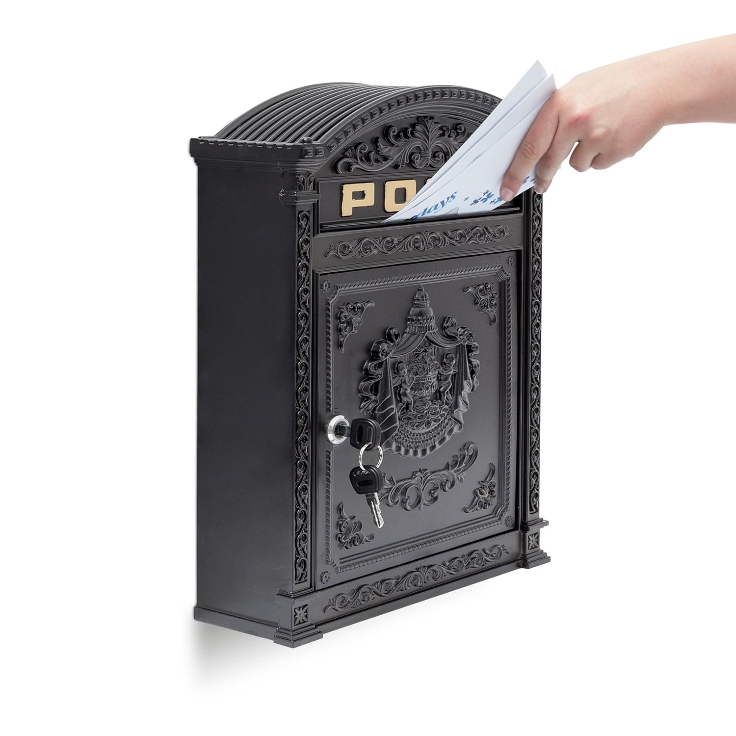 Relaxdays 46 Cassetta Della Posta Nero Hxlxp 114x41x28 Alluminio Buca Lettere Stile Antico Inglese Postale Cassette Della Posta Cassette Della Posta Multifamiglie