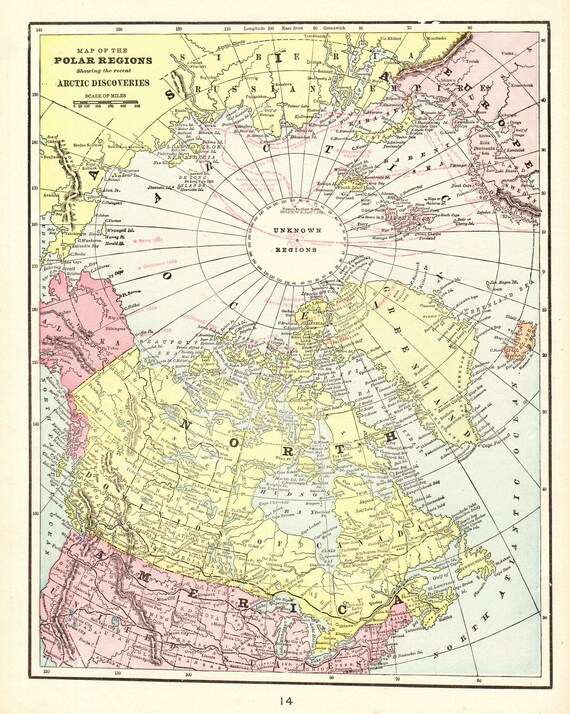 1901 Antique North Pole Map Of The Arctic Polar Regions Map Etsy