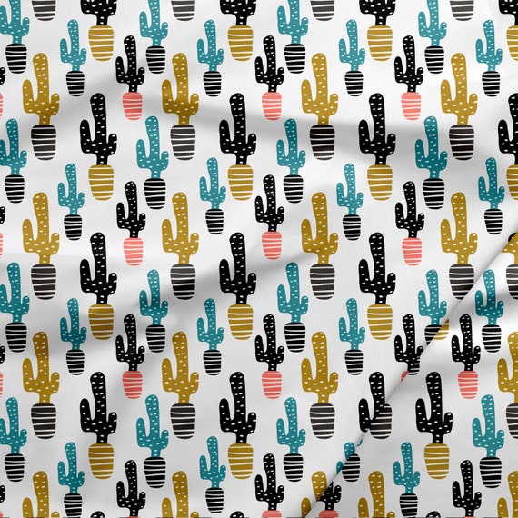 Modern Cactus Fabric 100 Organic Interlock Knit Cotton Kona Etsy