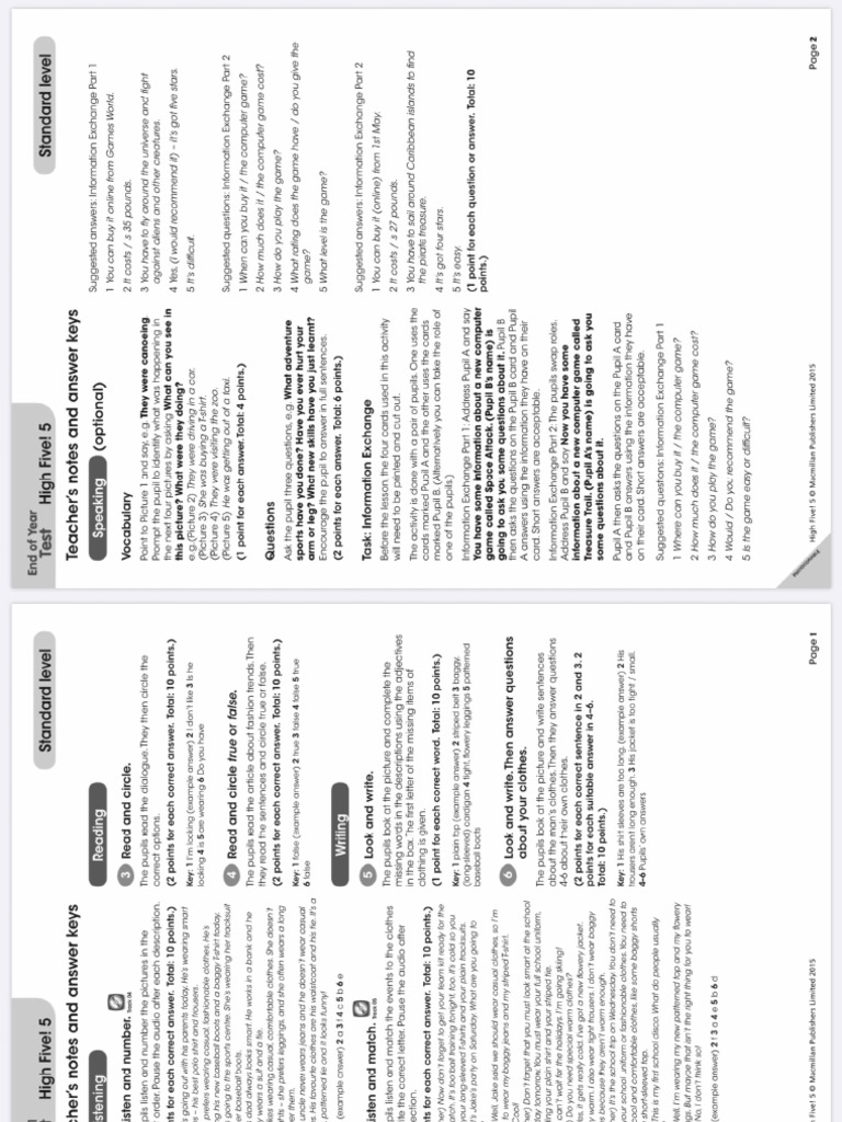 High Five Standard Tests Answer Key