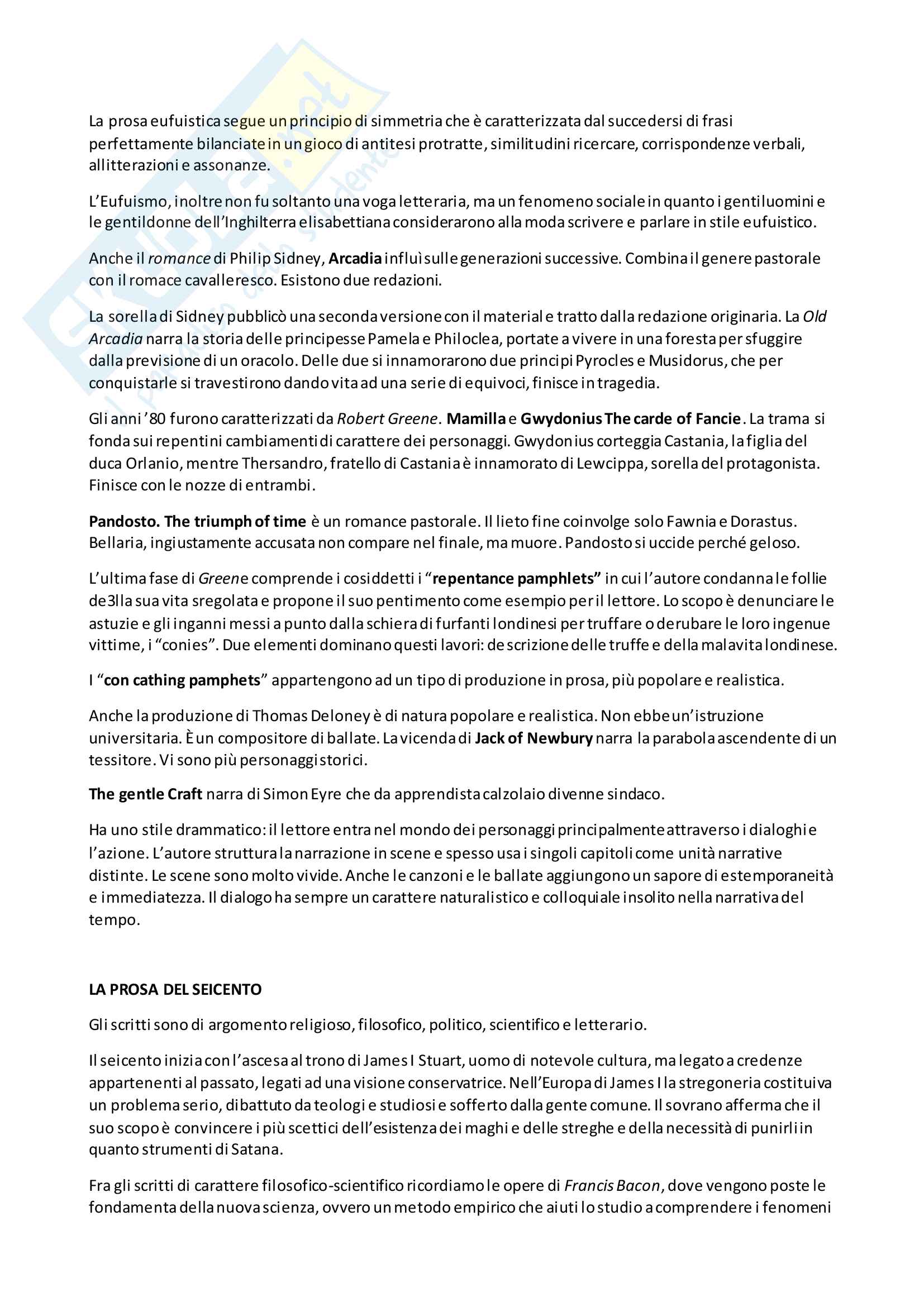 Letteratura Inglese Riassunto Studocu