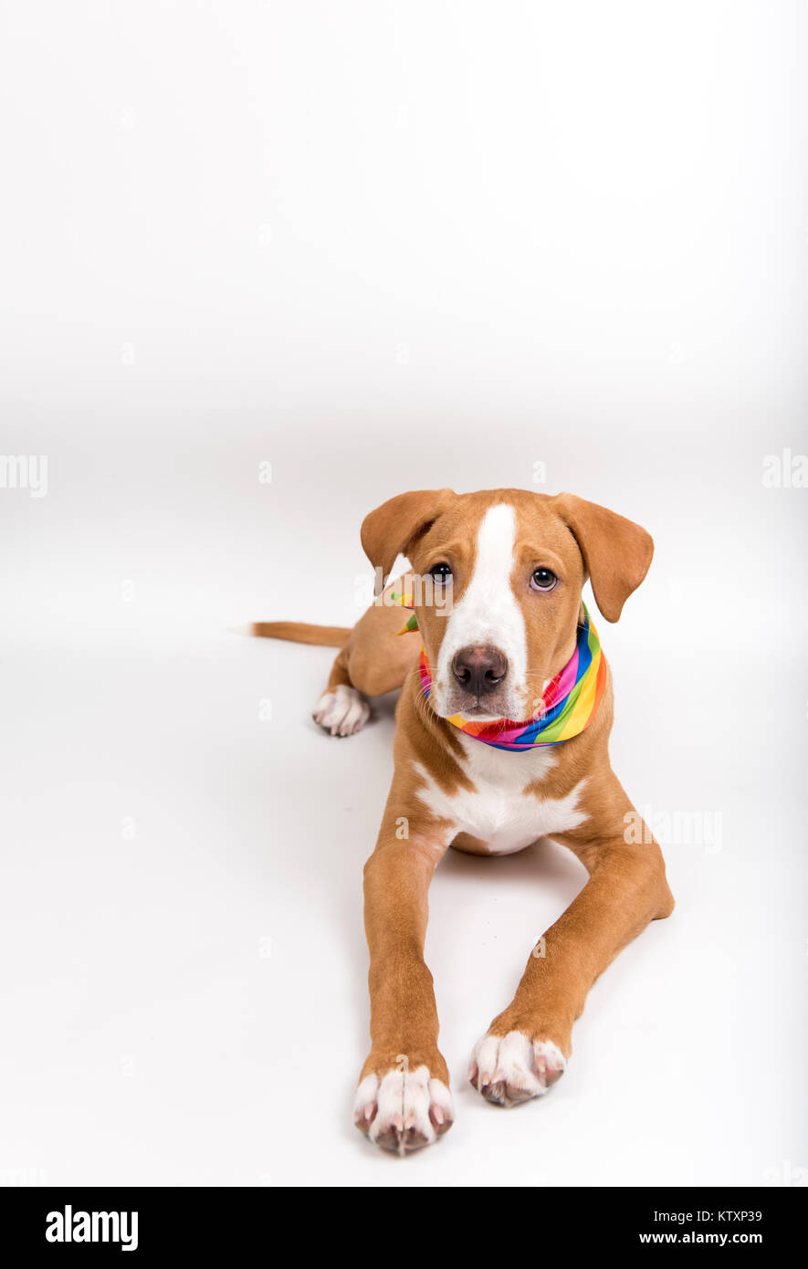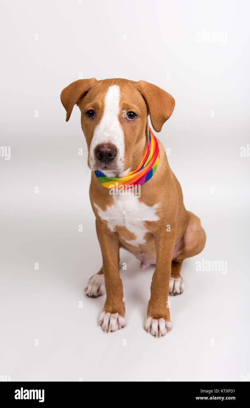 Colore Fulvo Giovane Cane Indossando Bandana Arcobaleno Foto Stock Alamy