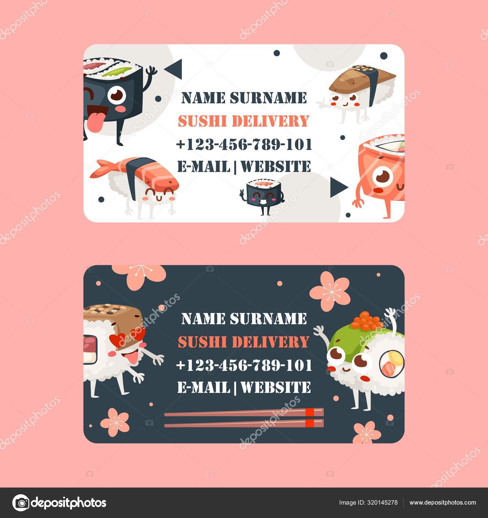 Sushi Bar Business Card Design Vector Illustration Asian Food Delivery Company Traditional Japanese Restaurant Business Card Template With Funny Cartoon Characters Stock Vector C Adekvat