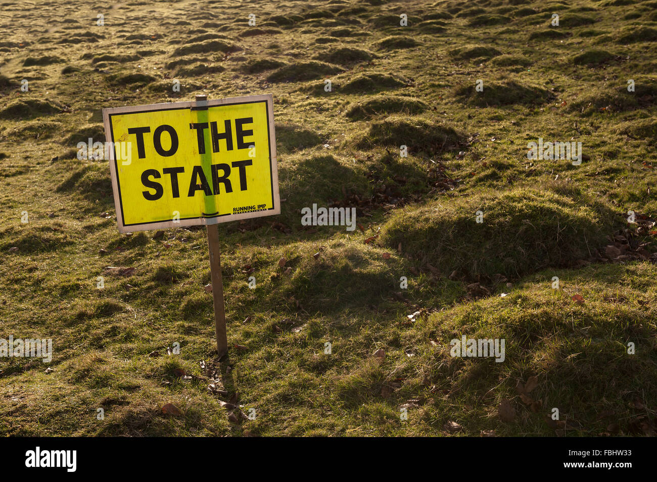 Backlit All Inizio Segno Accanto A Una Massa Di Accidentato Qualsiasi Hill Tumuli Un Viaggio E Il Pericolo Di Caduta Del Simpatico Delle Nazioni Unite Per La Distruzione Degli Habitat Naturali Foto Stock
