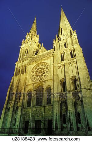 Chartres Francia Eure Et Loir Centro Europa Siglo Xiii Catedral Dama Notre Iluminado Por La Noche En El Aldea De Chartres Coleccion De Foto U Fotosearch