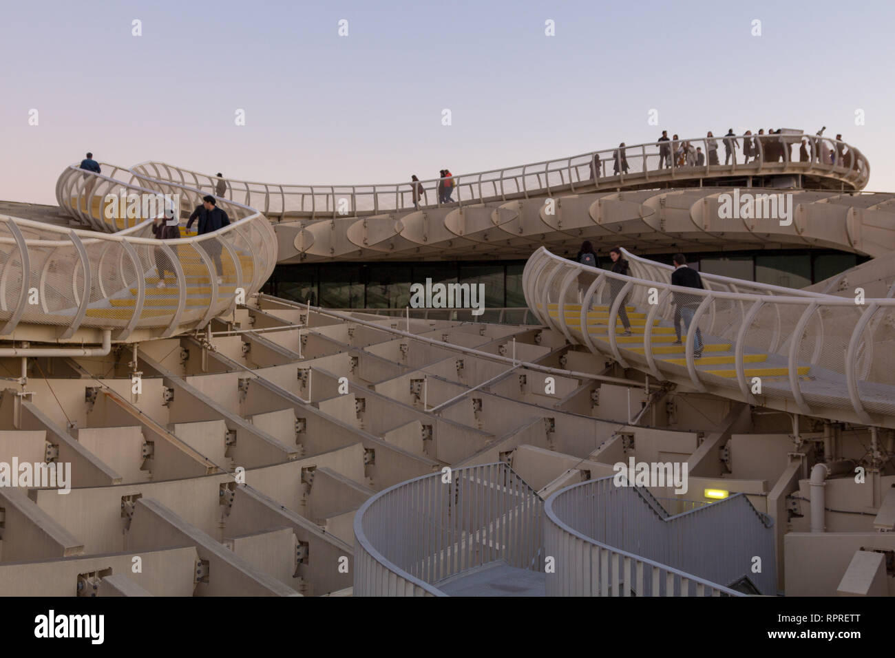Tramonto Nel Centro Della Vivace Citta Spagnola Di Siviglia Con Viste Da Las Setas Traduzione Inglese I Funghi Foto Stock Alamy