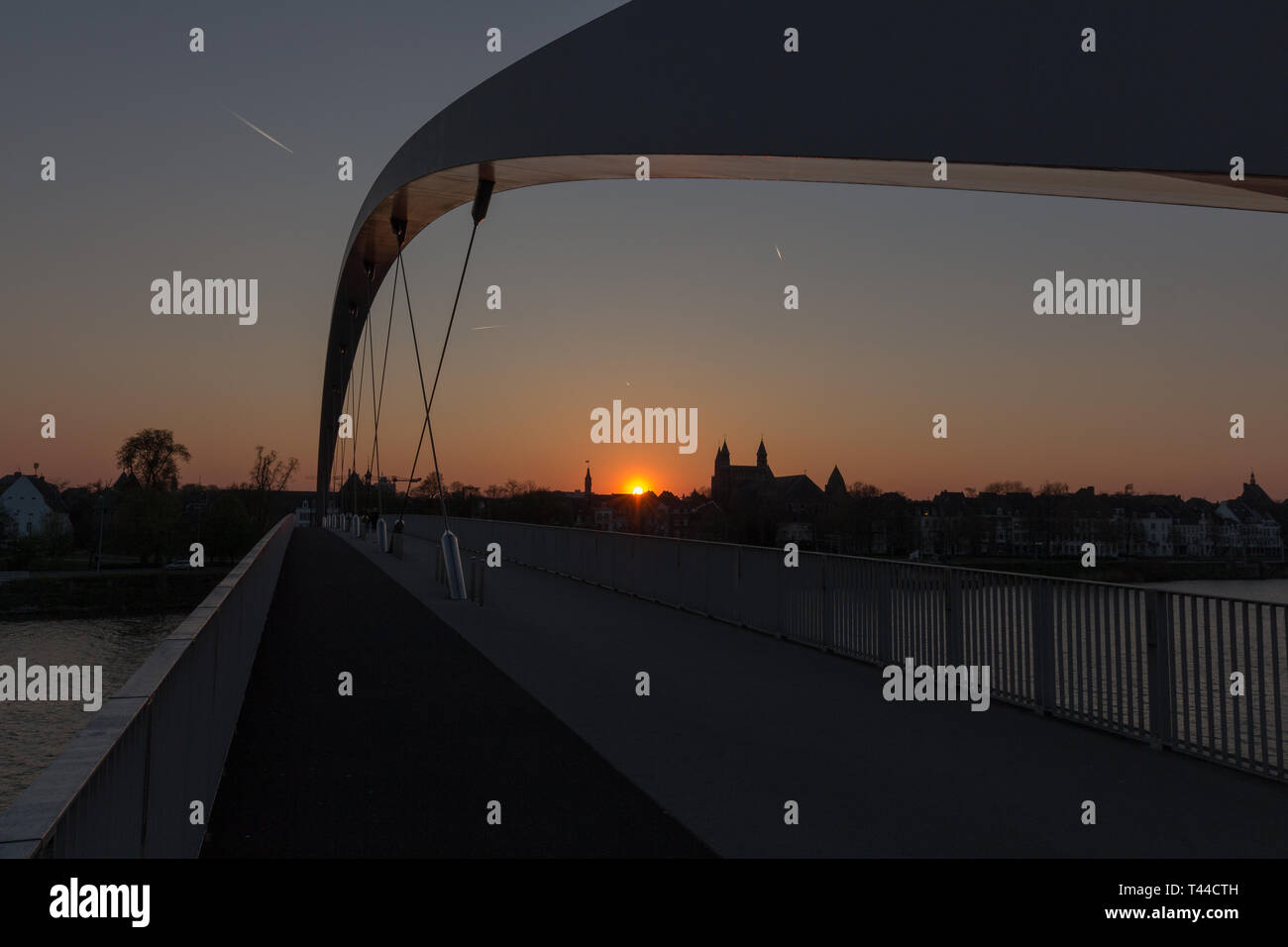 Brug Di Hoge Dal Tramonto A Maastricht Del Centro Immagine Stock Immagine Di Paesaggio Sera