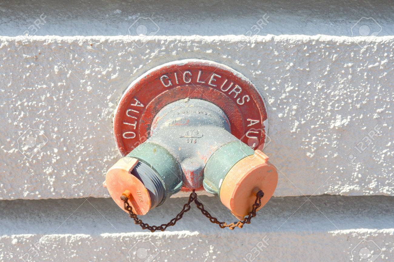Immagini Stock Idrante Antincendio Antico A Montreal Del Centro La Traduzione In Inglese E Auto Sprinkler Image