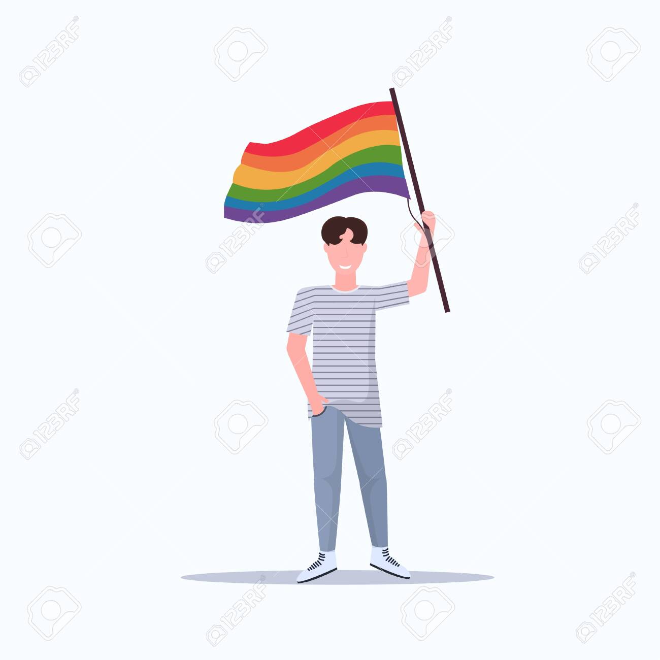 Man Gay Holding Lgbt Rainbow Flag Love Parade Pride Festival Royalty Free Cliparts Vectors And Stock Illustration Image