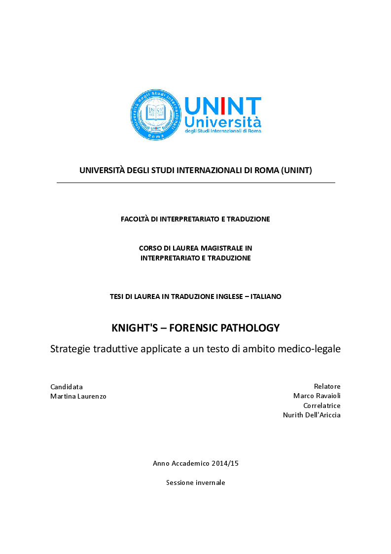 Knight S Forensic Pathology Strategie Traduttive Applicate A Un Testo Di Ambito Medico Legale Anteprima Tesi Pagina 1 Di 8 Tesionline