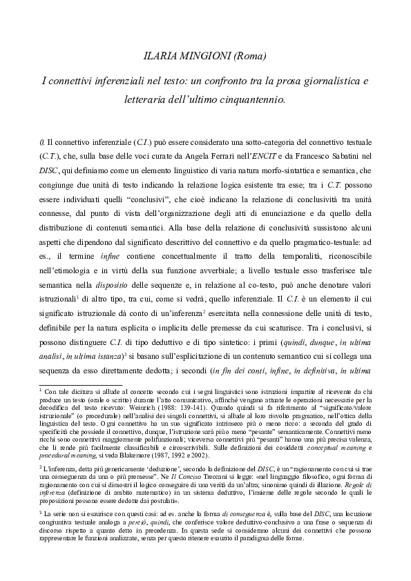 Doc I Connettivi Inferenziali Nel Testo Un Confronto Tra La Prosa Giornalistica E Letteraria Dell Ultimo Cinquantennio Ilaria Mingioni Academia Edu