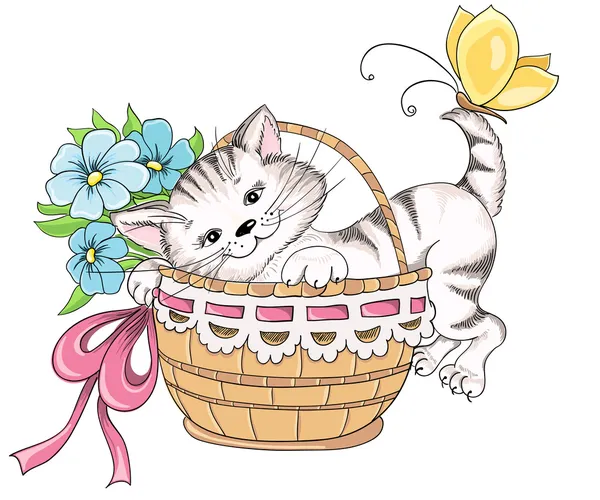 ᐈ Gattino Nel Cestino Immagini Di Stock Disegni Gatto Che Dorme Disegno Colorato Scarica Su Depositphotos