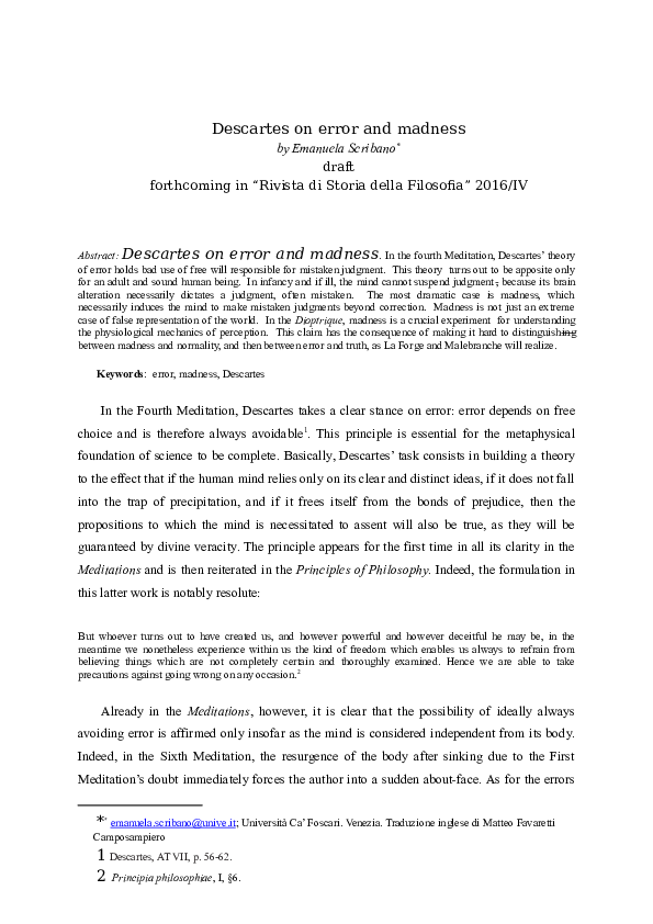 Doc Descartes On Error And Madness Emanuela Scribano Academia Edu