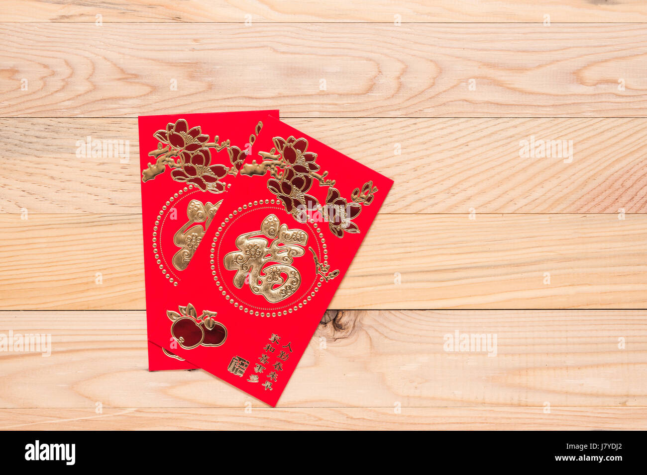 Vista Superiore Rosso Cinese Utilizzare Buste Nel Nuovo Anno Cinese Festival Su Sfondo Di Legno Traduzione In Inglese Significato Fortunato E Riccamente Foto Stock Alamy