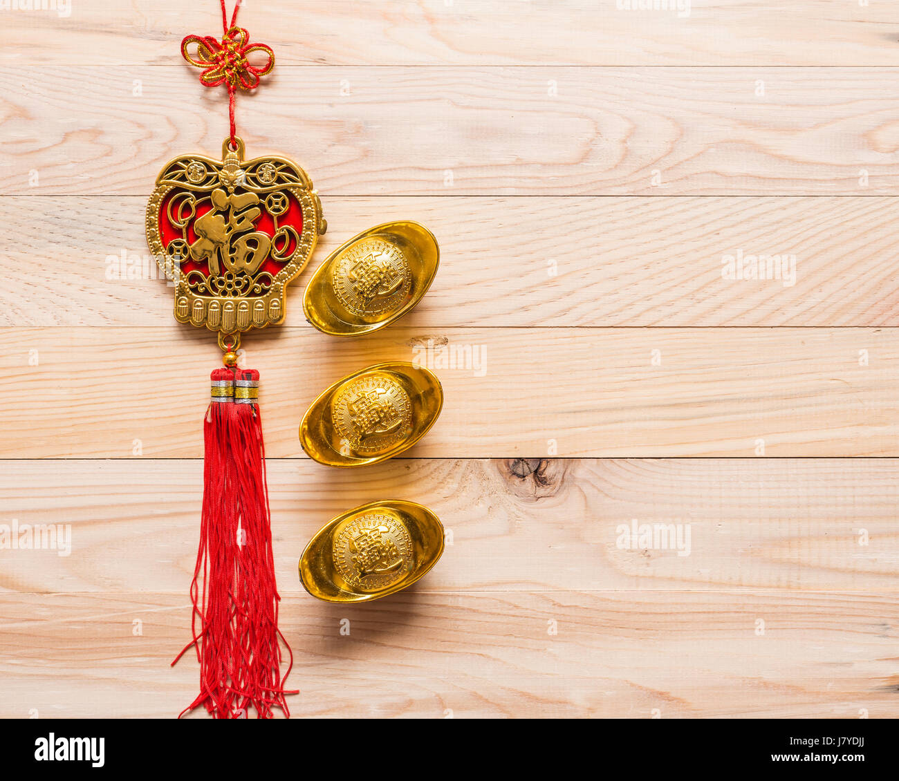 Immagini Stock Oro Di Vista Superiore E Decorazione Cinese Rossa Del Nuovo Anno Su Fondo Di Legno Traduzione In Inglese Significa Fortunato E Ricco Image