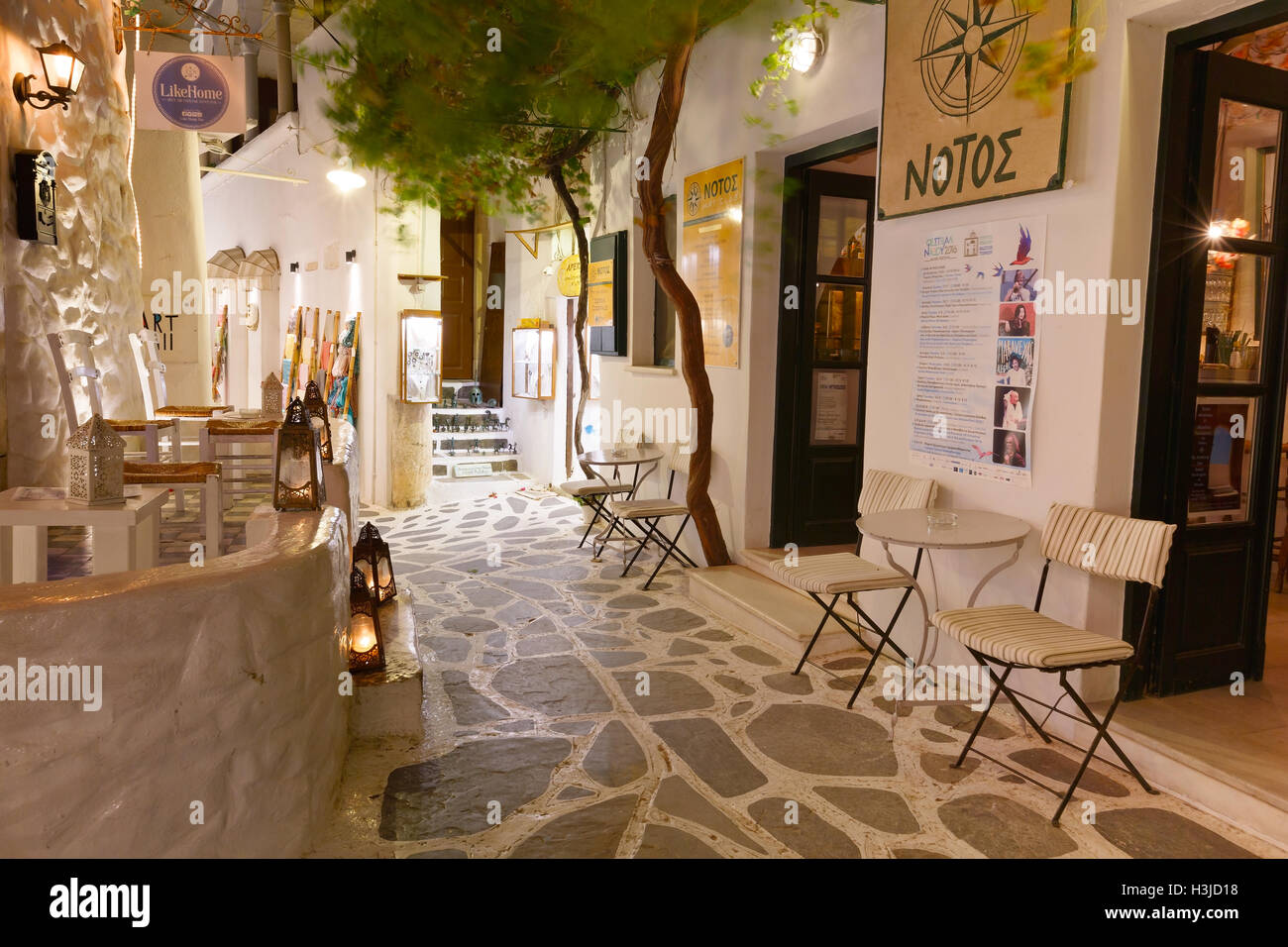 Bars In The Old Town Of Naxos Stock Photo Alamy