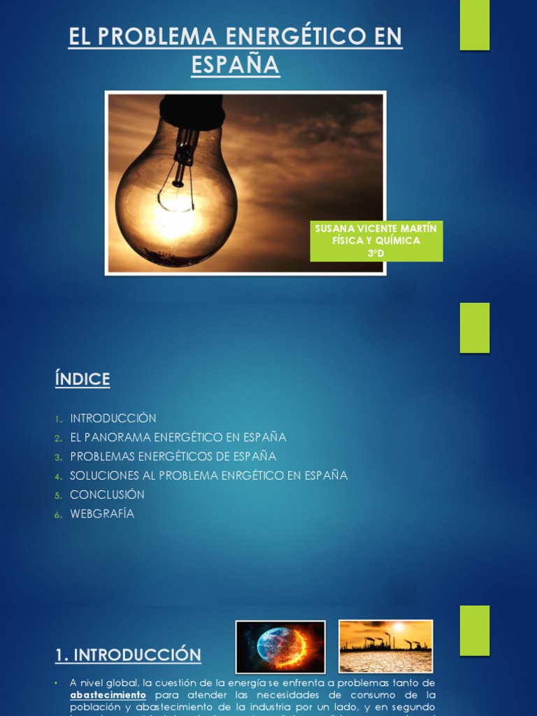 El Problema Energetico En Espana Susana Vicente Martin Fisica Y Quimica 3ºd Energia Renovable Desarrollo Energetico