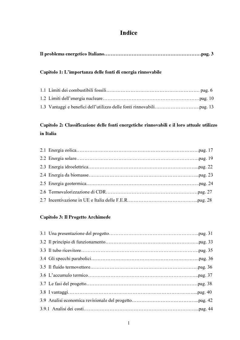 Il Problema Energetico Italiano Il Progetto Archimede Come Possibile Soluzione Indice Pagina 1 Di 2