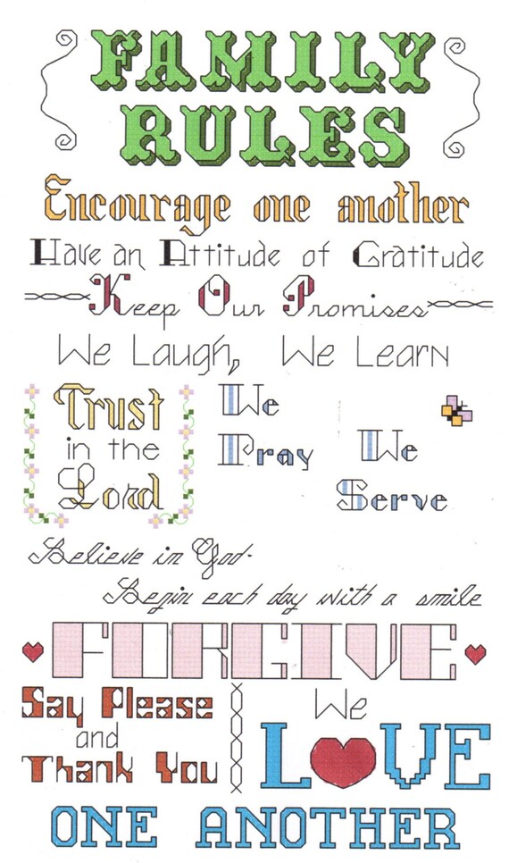 Le Regole Della Famiglia Cross Stitch Pattern Contato Cross Etsy