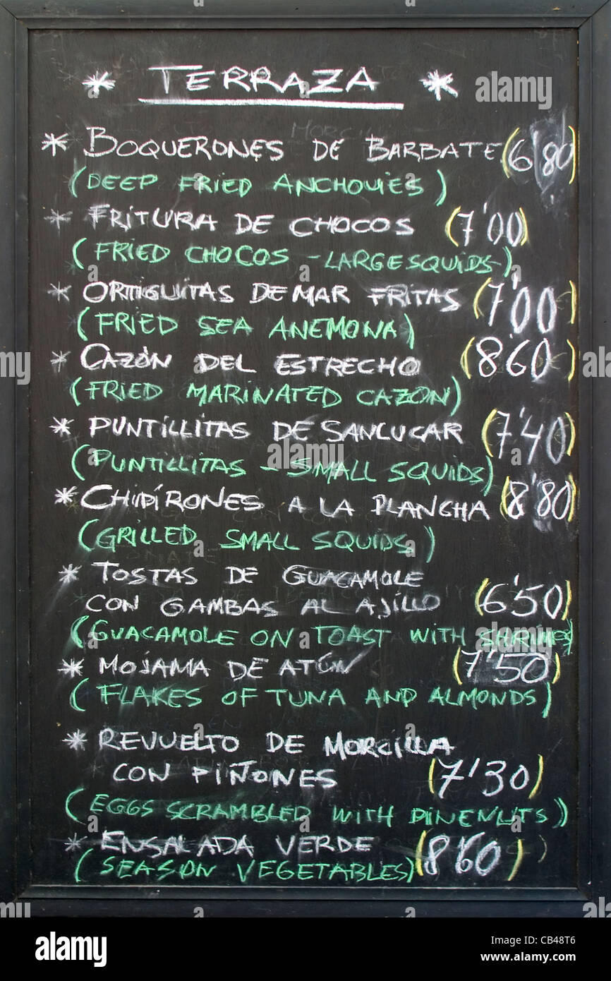 Ristorante Spagnolo Menu Scritto Sulla Lavagna A Vejer Andalusia Spagna Foto Stock Alamy